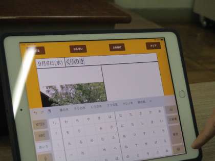 理科の学習で9月の植物の様子を写真に撮り、絵日記アプリを使って記録をまとめました。