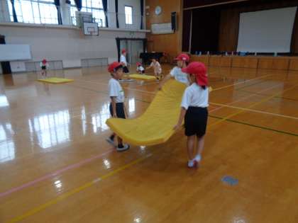準備はのときは「○○さん、そっちがわ持って〜」と、お互いに声を掛け合いながら