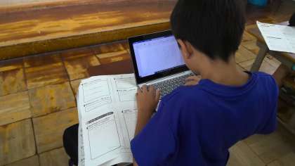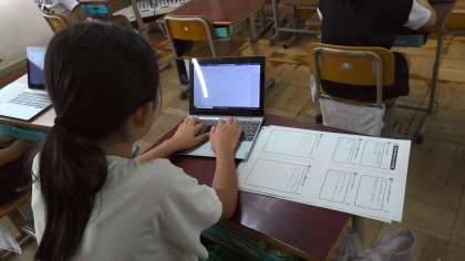 GIGA端末を使って、下書きをしています。