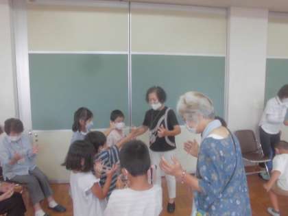 昔の遊びを教えてもらい、一緒に遊びました。子ども達はとても楽しそうに活動をしていました。