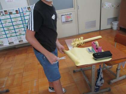 今日は黄色い模造紙を使っての作成になりました。
