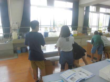 「まるい粒がいっぱいある。」「こんな形してるんや。」と気づいたことを話し合っていました。