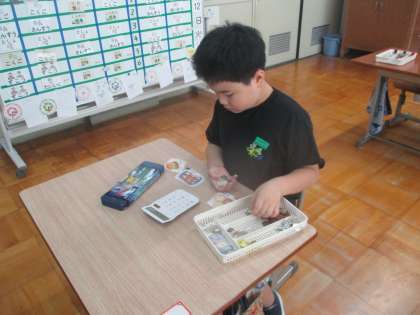 算数の時間にお金の学習に取り組んでいます。