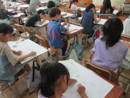 一番表したい物を大きく描いたり、きちんと色を塗ったりと、工夫して頑張って描いていました。素敵な絵が出来上がるのが楽しみです。