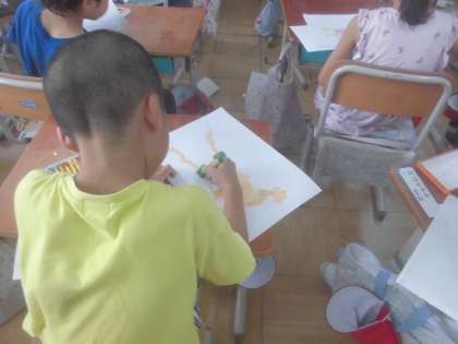 人物を描いています。色を塗るときは集中して静かに活動をしました。メリハリをつけて学習をしています。