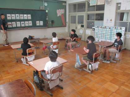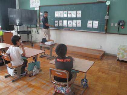 3組の英語活動では、国語や算数、理科などの教科を英語で言ってみました。こんな風に言うんだと興味を持って発音していました。いろいろな英語に興味を持って楽しそうに取り組んでいます。