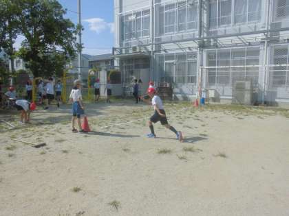 その後運動場で記録を測りました。