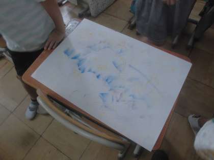 お話から想像した海の生き物や、お化けを描きました。集中して描いていました。