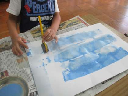4年生児童たちは、今日背景を描きました。