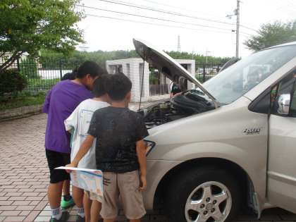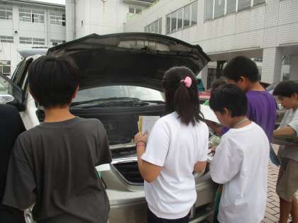 1組では、社会「自動車をつくる工業」の学習が始まりました。今日は、実際の車を見学し、気づいたことを書き込みました。「これは、何かな?」「どの車にもあるな。」など、興味津々でした。