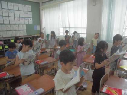 うみのかくれんぼの学習を始めました。今日はこの学習で何をするのかについて知ったり、音読をしたりしました。また、生活している上で、隠れている生き物を見つけたことについても発表をしました。