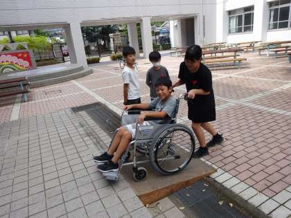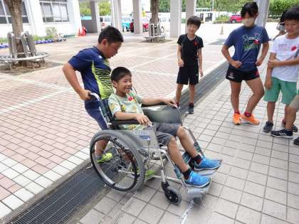 一人で操作するには、どんなことに気を付ければいいのか、車いすを押す(サポート)役の立場では、どんな風に声をかけたり、操作すると乗っている人が安心するのか、しっかりと考えながら、実践していました。