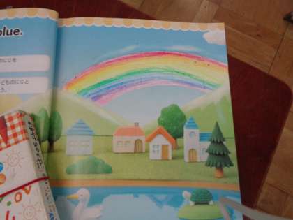 色んな色を使う子、塗り方を工夫している子など素敵な虹ができました。