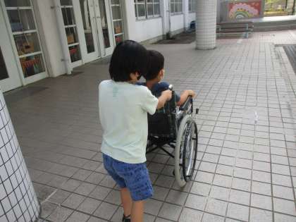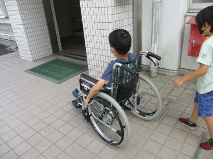 今日は3くみの子たちで車いす体験をしました。