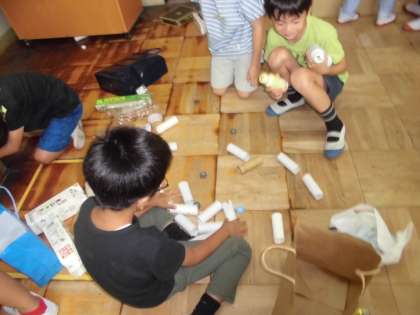 身の回りにある『ガラクタ』を使って、どんな遊びができるか考えました。