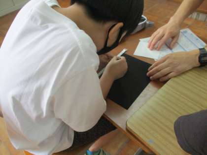 今日は高学年児童たちが家庭科の裁縫を学習していました。