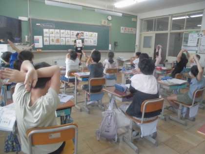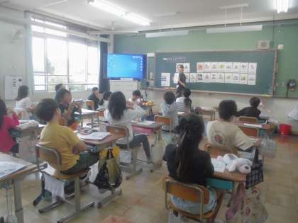 先生ができるかどうかを予想してから、「Can you〜?」「Yes,I can.」「No,I can't.」を使って答え合わせをしました。