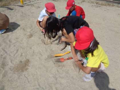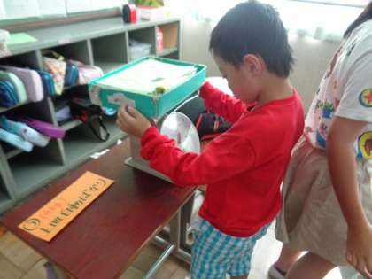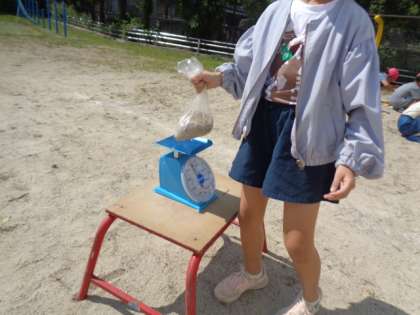 砂場で1kgの砂袋を作ったことで、1kgの重さを実感できたようです。