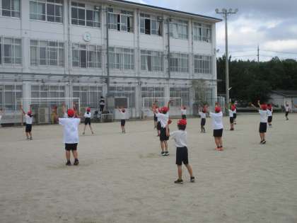 先日の4年生の体育では、運動場でよさこいの立ち位置を確認しました。