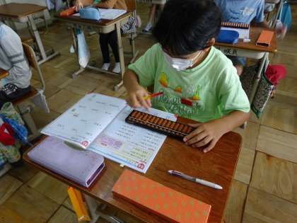 小数や大きい数のたし算やひき算の計算をそろばんを使って計算しました。