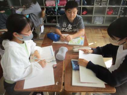 国語「やまなし」で、どうして作者(宮沢賢治)は、やまなしという題名にしたのかを考えるというが学習をしました。まずは自分の考えをノートに書いて、その後グループでも話し合いました。