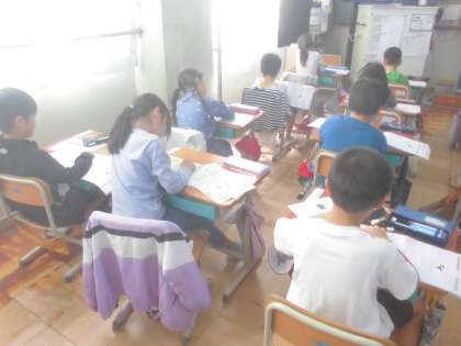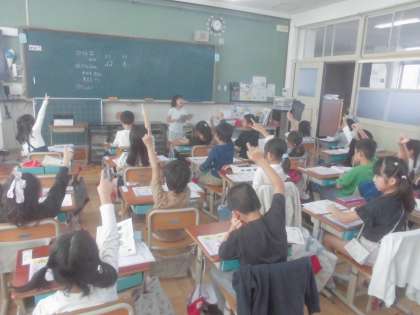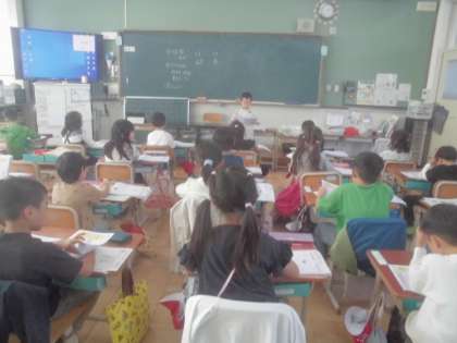 漢字学習を進めています。今日は子ども同士で漢字の学習を進めてみました。みんなはっきりと音読をしたり、指なぞりをしたりしていました。