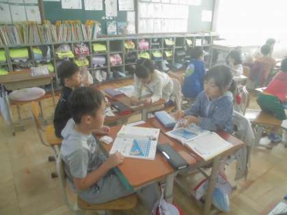 今日は最初に計算カードの練習をしました。そのあと計算カードのきまりをみつけました。最後には、友だちと計算カードの問題の出し合いをしました。とても意欲的にしていました。