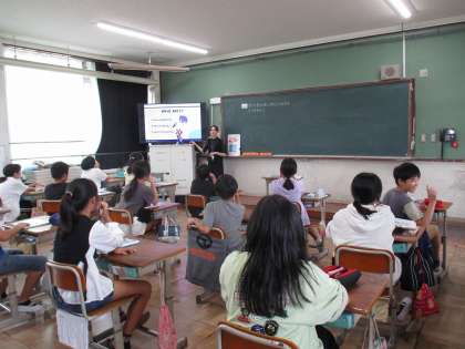 外国語では、職業や性格などの表現を学習し、「Who am I?」クイズを作り、世界で活躍する人を紹介するという目標に向かってがんばっています!