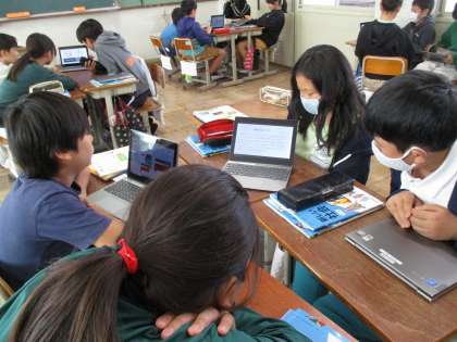 天下統一に向けての働きが大きかったのは、織田信長か豊臣秀吉のどちらかについて調べたことを交流しました。後日、調べたことを基に、しっかり討論していました!