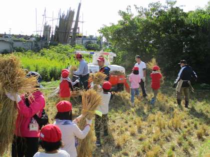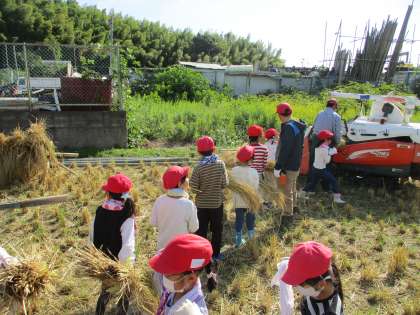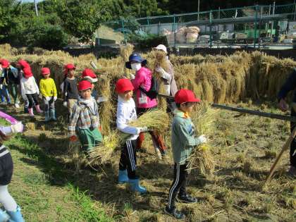 干していた稲を機械まで運び、籾がとれた藁をトラックまで運ぶという作業をしました。
