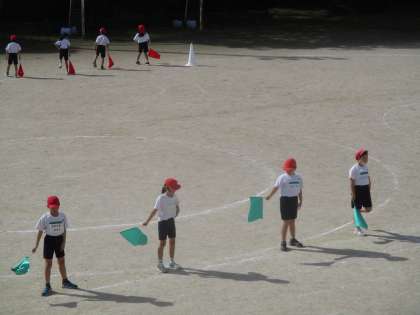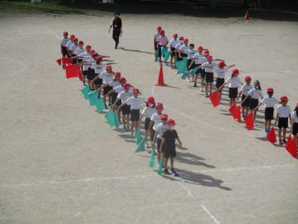 今日はフラッグの使っての表現運動の練習を行いました。3組の教室から見ると、かっこよくて動きもよくなってきています。運動会が楽しみになりました。
