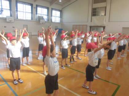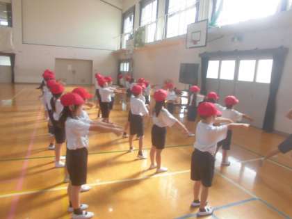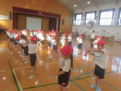 運動会に向けてリズムダンスの練習をしました。1回通して、細かい所をみんなで確認しました。最後まで集中して頑張ることができました。