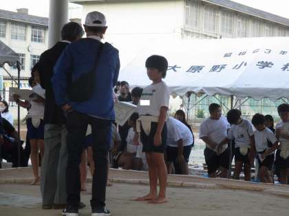 10月15日(日)大原野中学校で、ふれあい子どもすもう大会が開催されました。3年生3チームと5年生1チームが参加しました。