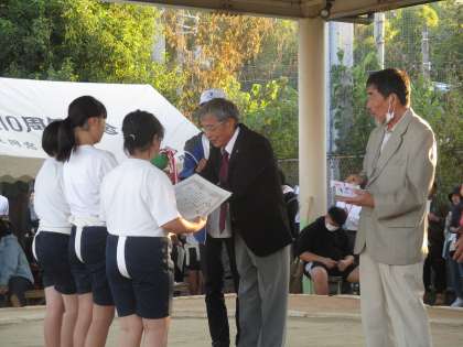 5年生女子は、大原野小と対戦しました。1回戦は、上里が勝ち、2回戦は、大原野小が勝ったので、代表決定戦の末、優勝となりました。どの子も3週間毎日練習してきた成果を出し、あきらめずに最後まで戦ったので、とてもよい勝負となりました。