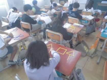 棒を使って、色々なものを作りました。棒を使う時は、三角形は3つ、四角形は4つ必要だと気づいていました。