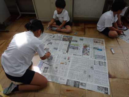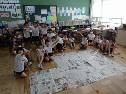 そこで、1平方メートルの広さがどのくらいなのか、新聞紙で作ってみました。自分たちが思っている以上に広くてびっくりしていました。