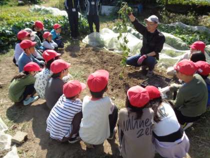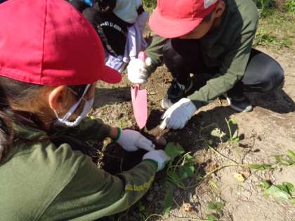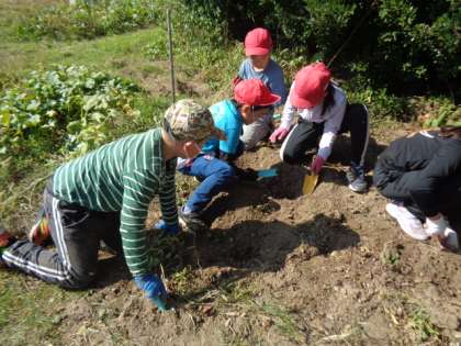 子どもたちは土の中で見えないお芋の様子や大きさなどを話しながら畑に向かいました。