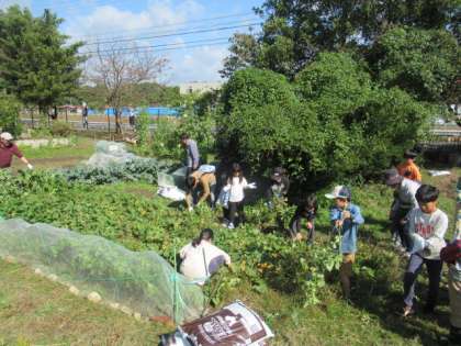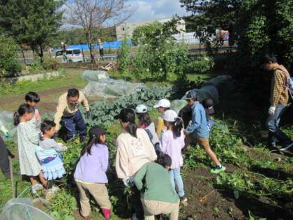 畑で育てたおいもをみんなで掘り、焼きいもにして食べました。