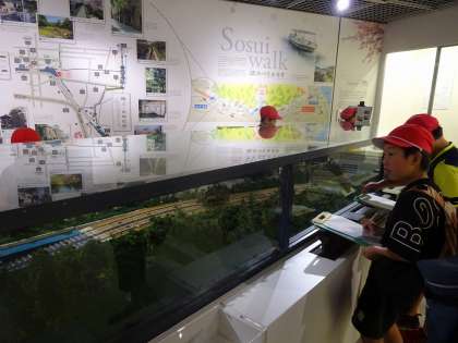 最後は、琵琶湖疏水記念館に行きました。実際使われていた道具や水力発電の仕組みなど、疏水に関わる様々な資料を目の前に一生懸命メモを取っていました!まさに新聞記者でした♪