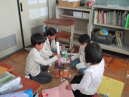 「あそんで ためして くふうして」の学習では、1年生を招いておもちゃフェスティバルをするという新たな目標に向かって頑張っています。