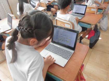 実際に演奏する前に、GIGA端末のソフトでリズムの確認をしたので、