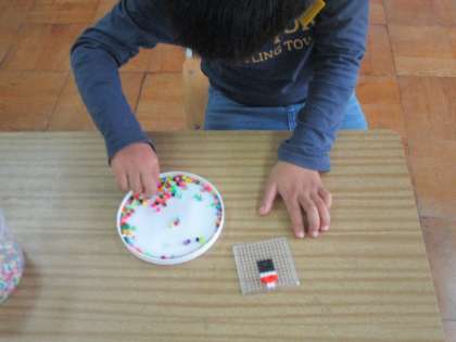 クラスの子はアイロンビーズを使っての作品作りに挑戦している子もいます。
