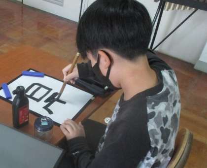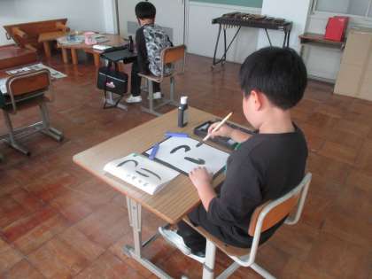 今日は習字を行いました。自分で用意して手本を見ながら丁寧に書いています。うまく書けるとても嬉しそうです。