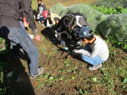 3くみ 芋掘り 〜実習の先生たちと一緒に〜