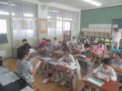 漢字学習を自分達で進めてできるようになってきました。テキパキ先生役をしています。