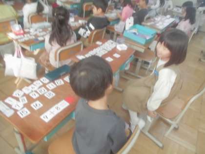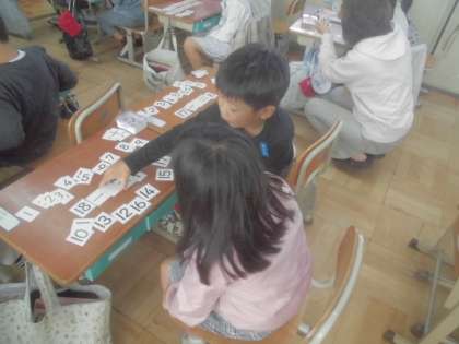 ひきざんの問題やたしざんの問題を考えて、クイズをペアで出し合いました。クイズを通して、計算の習熟を目指しています。