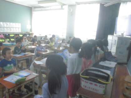 やまびこごっこの歌をクラスで歌いました。真似をして上手にできました。