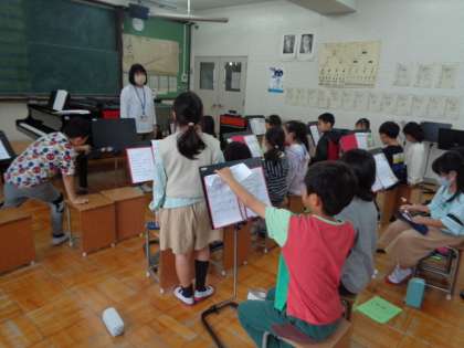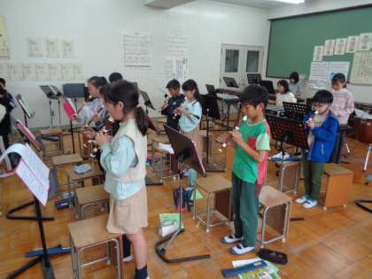 合奏の練習では、上手くいったところやそうではなかったところを出し合いながら、みんなで音を合わせるためにリズムの確認をしながら練習を進めています。