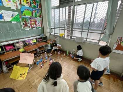 1年生と2年生でのおもちゃフェスティバルに向けてクラスのおもちゃフェスティバルをひらきました。実際にお店番をしたりお客さんとしてまわって遊んだりしました。
