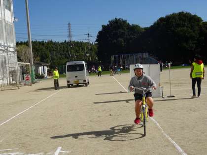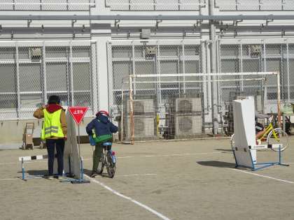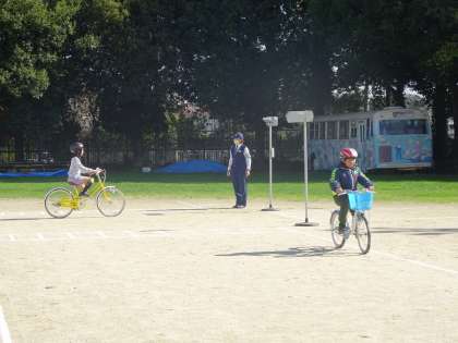 交差点の渡り方や自動車が止まっていた時のよけ方など、交通ルールを守り、自転車に乗る練習をしました。